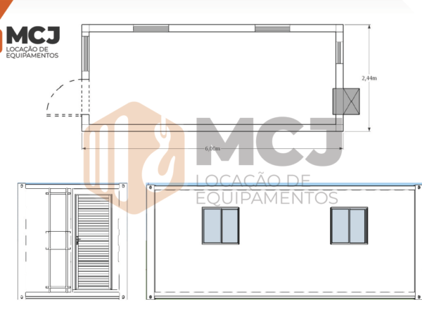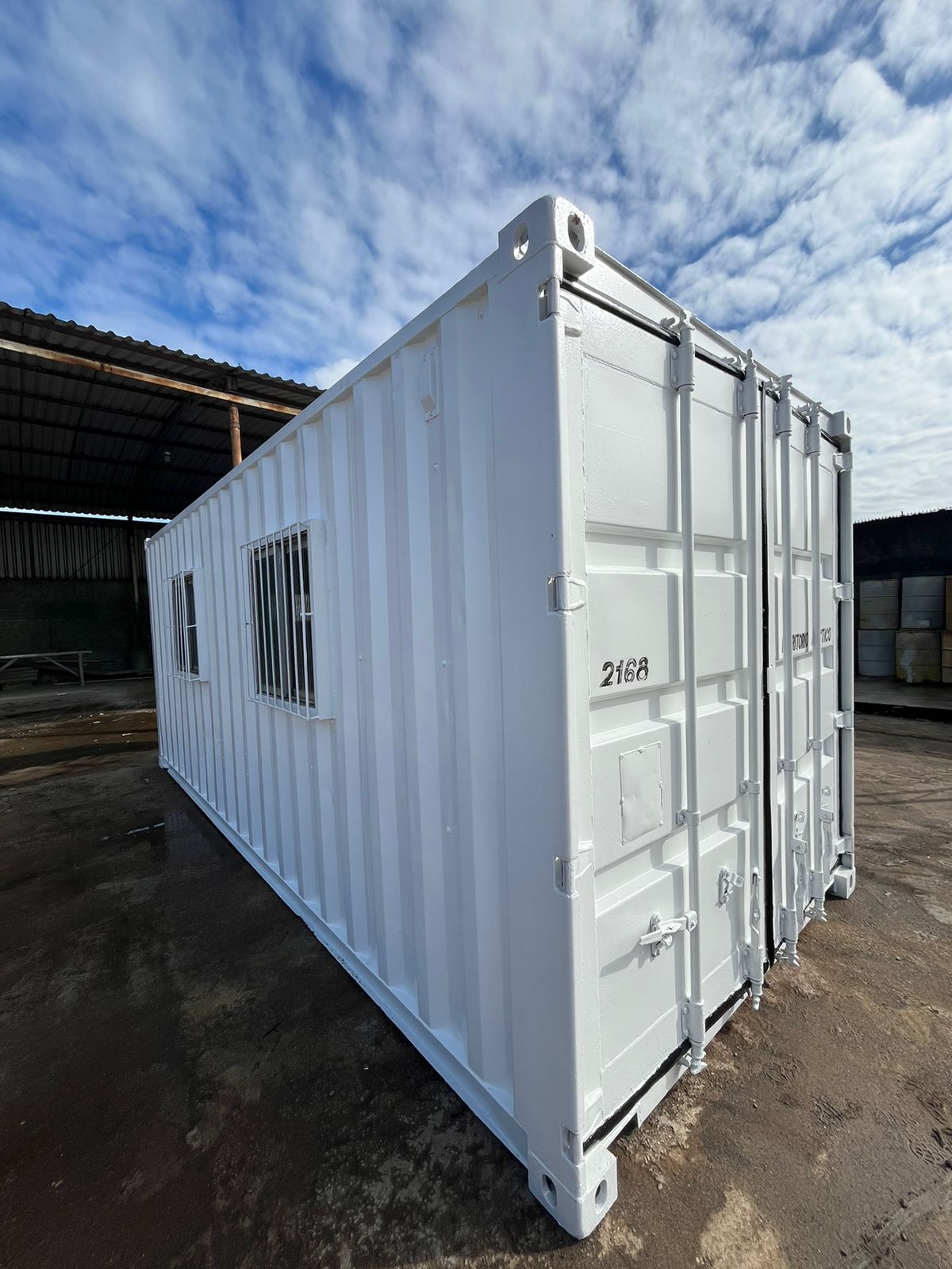 Container tipo maritimo: 5.058×2.438×2.591. Podem ser utilizado em unidades habitacionais para alojamentos, escritórios em obras de montagem, construção civil e eventos.